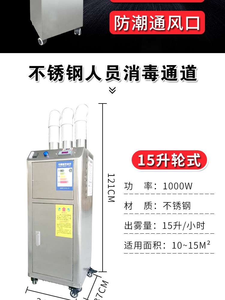 人员消毒通道,适用于大型家禽家畜养殖场,活畜活禽交易市场,边境检查站,疫情控制,高端生物制品厂,食品饮料厂,制药厂,实验室等;电动超微雾化机、全自动人员消毒通道是卫生防疫消毒设备升级改造的高端设备,帮助客户实现高附加值产品生产转型的必备设备。