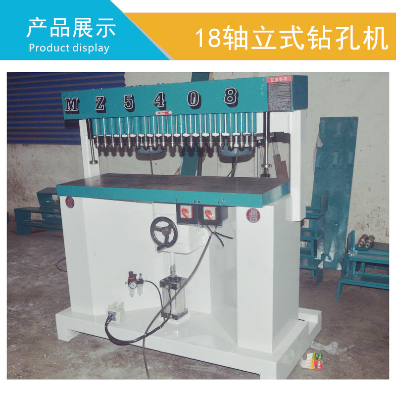 立式钻特点:台面气动自由升降,钻轴数量控生产需要可以加减,钻孔间距可以任意调节,操作简单安全,适用于木材,铝材,塑料等材料钻孔打眼。