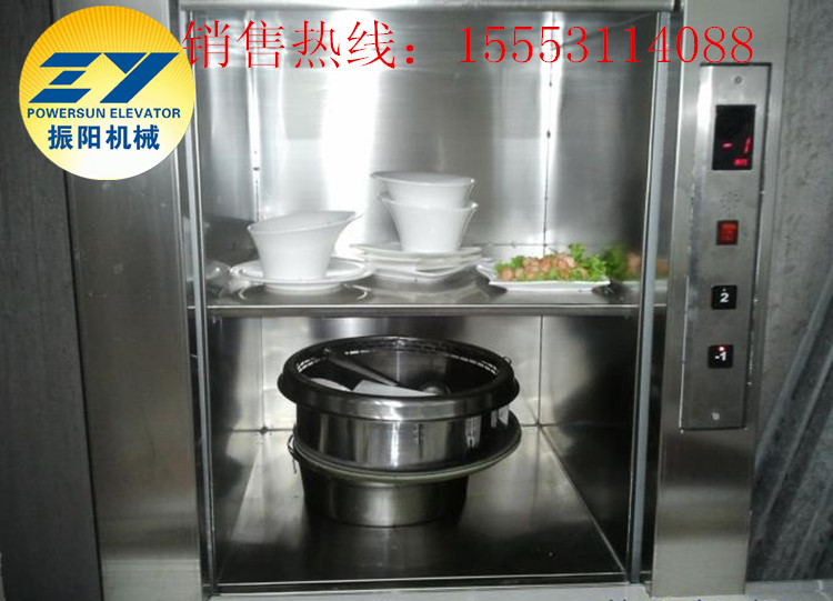 此形式的传菜电梯在距地面的一定高度平层,形成工作平台,与操作人员腰部水平,适合使用者运送体积小,重量轻的物品,形式灵活多样,可在多种场合下使用.