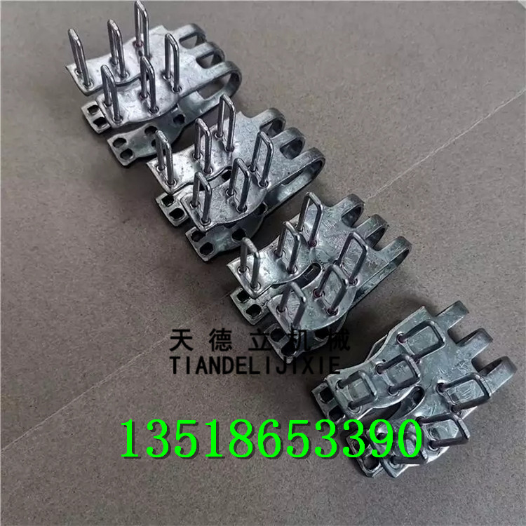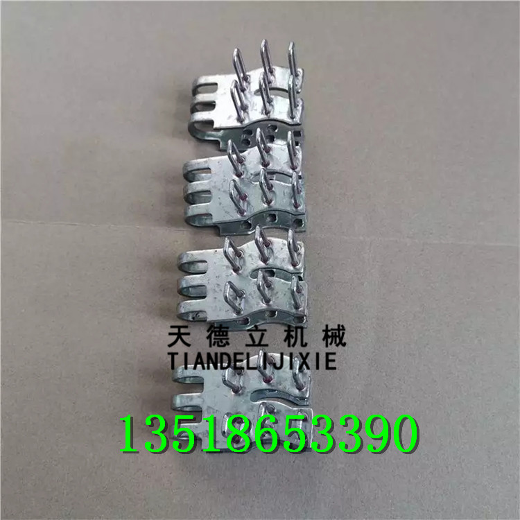 采用特殊工艺制造,每单元扣体上镶有三组扣钉,错位式扣钉布置,对输送带纤维损伤小,皮带工作时皮带扣体不易翘头、脱落。