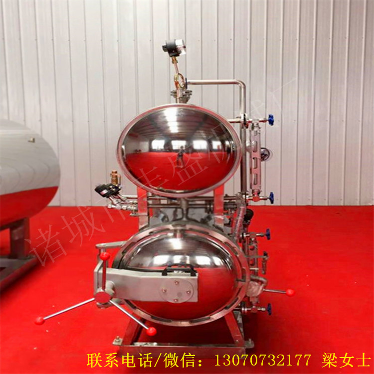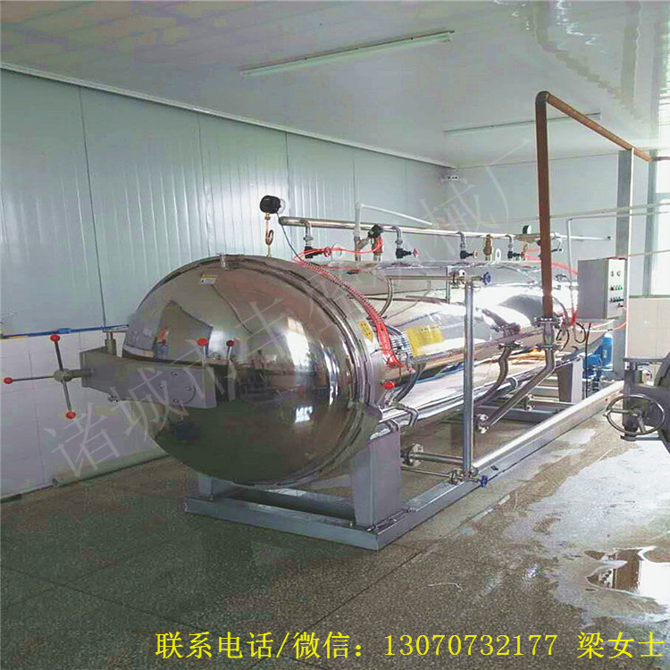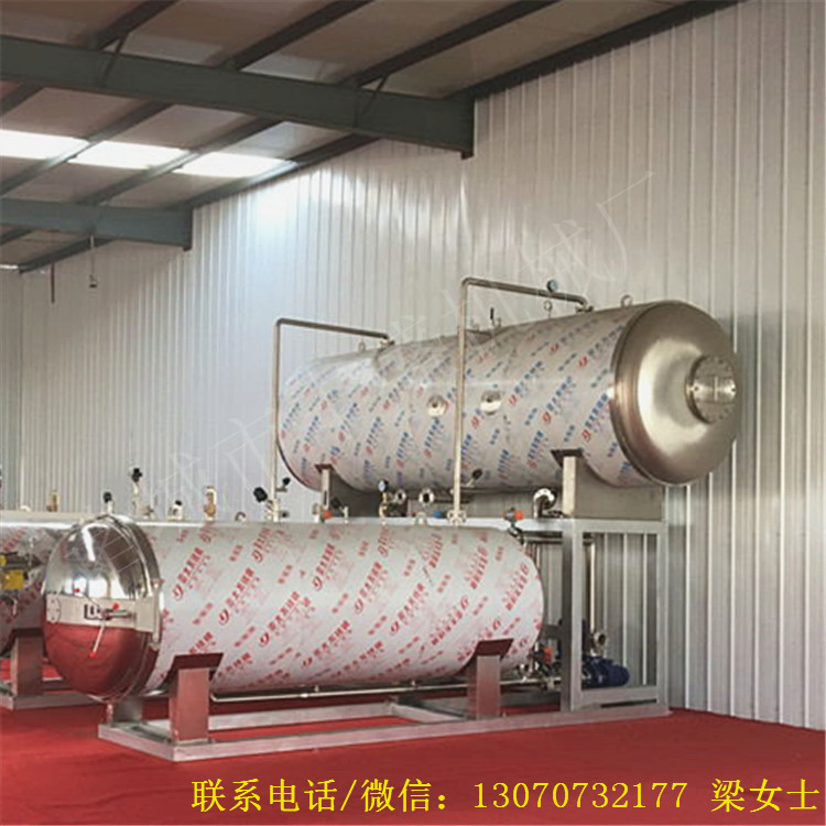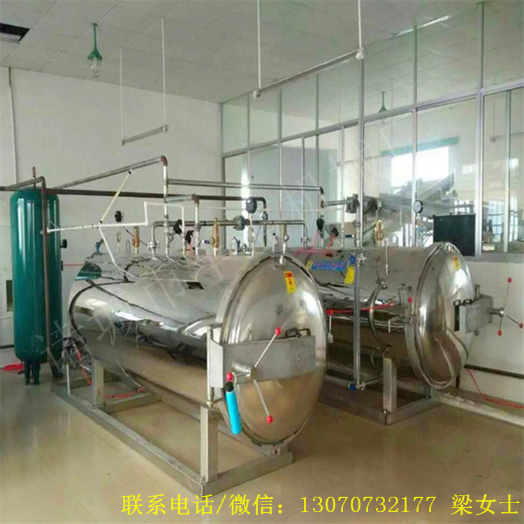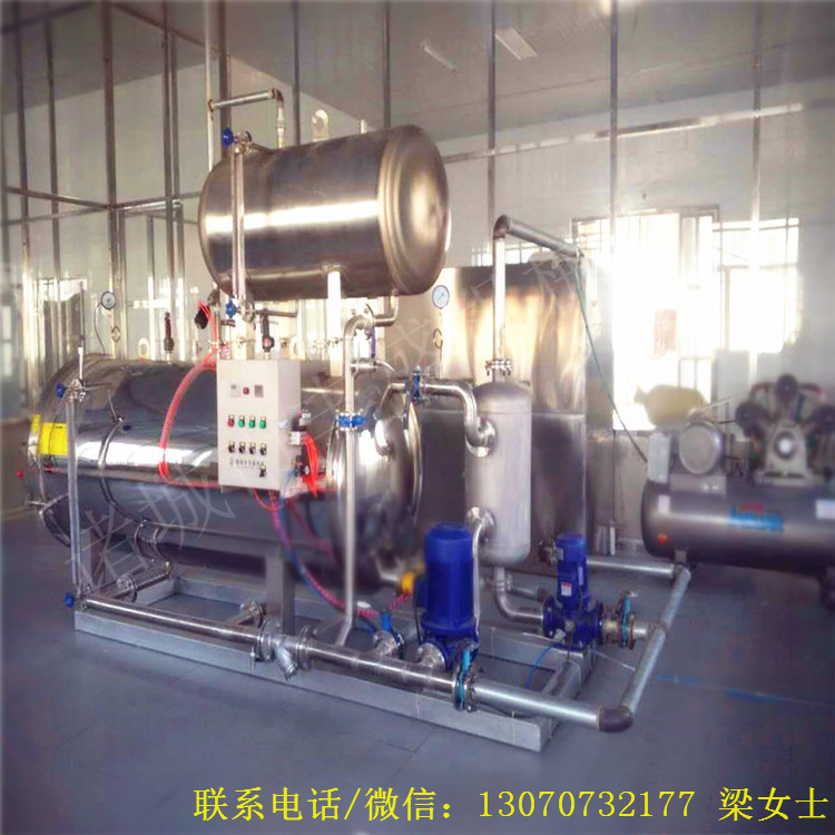 3、均一的水流交换方式,温度均一,无死角采用国际先进技术,利用热水循环、浸泡式杀菌,在杀菌过程中,杀菌罐内的循环水呈上、下不断的切换,保证了杀菌罐内从升温、保温到降温,任意点的热分布均一,小型高温杀菌锅有效杜绝了杀菌过程中出现的死角现象,使产品的保质期更加稳定和长久。