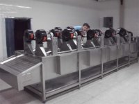 设备的工序流程为:选菜--气浴清洗--切菜--拌盐--发酵腌制(不锈钢腌菜池)--气浴脱盐--土坛腌制半年--滚揉拌料-- 真空包装--巴氏杀菌--风干