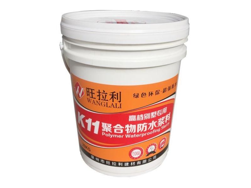 一、产品概述K11防水浆料是一种聚合物改性水泥基防水材料。它是双组份浆料,粉料是由优质的水泥细沙及独特的非常活跃的高分子聚合物组成;添加剂是X基苯乙烯合成橡胶所组成的乳液,由粉料与添加剂按规定比例混合以后形成的防水浆料,涂刷后能渗透到低材内部形成晶体,阻隔从个方向的水通过。二、使用范围K11防水浆料可以用于混凝土、砖墙、混凝土切块、预制块等各种建筑结构的室内外防水施工。如:地铁站、矿山、隧道、电梯井、地下室、厨房和卫生间等。三、基材表面准备1、低材必须坚固、平整、干净,无飞尘等杂质。2、所有小孔隙、沙眼可用K11粉料加入少许清水搅拌成湿团状,将其抹平。3、涂抹浆料之前,预先和充分湿润低材,但不能有积水。4、有明显裂缝的地方,要先用堵漏王后K11防水浆料。