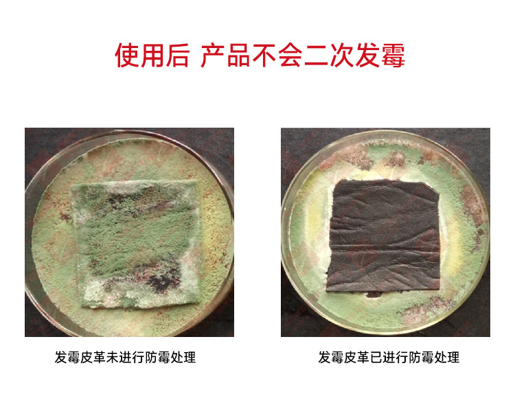 1.杀菌十分广谱、长效,对皮革,纺织布料、木材等常见的黑曲霉、青霉、黄曲霉、木霉等多种霉有极好的杀灭功能;