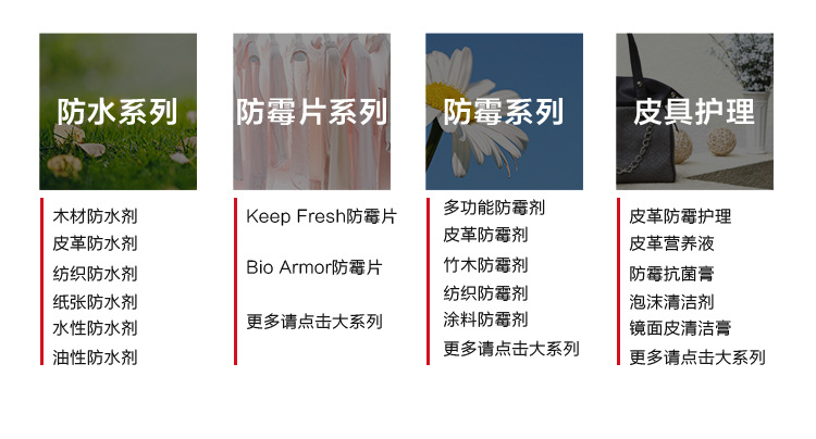 广州佳伲斯防霉抗菌科技有限公司长期专注于防霉抗菌领域的研发与应用,针对不同领域工业微生物危害的防治,开发了一系列环保高效的防霉、抗菌、除臭、防潮、防水、皮革护理等系列产品,广 泛应用于皮革、纺织、竹木、涂料、橡塑、PU、PVC及纸类包装等材料。为皮鞋、皮具、服装、家具、建材、高精电子、体育用品、工艺礼品等产品在生产、包装、仓储、运输及销售过程中提供了全程 的呵护,有效地防治了各类微生物的危害,逐渐形成了一整套成熟的防霉抗菌解决方案,被业界誉为“防霉医生”。