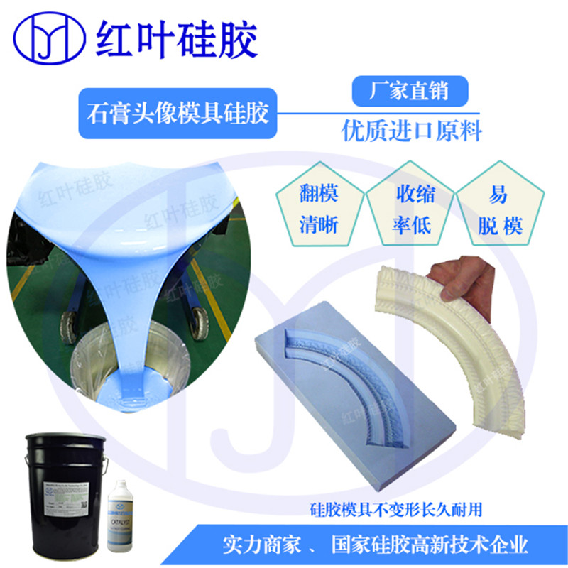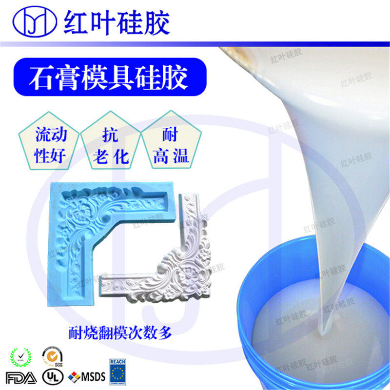 石膏线条模具硅胶主要用于PU树脂、不饱和树脂、聚氨酯树脂、水泥雕塑、石膏工艺品、石膏线、肥皂手工皂、轮胎翻模等包模灌注模模具制作。红叶硅胶做出来的模具不冒油品,干爽,好脱模,易操作,翻模次数多。