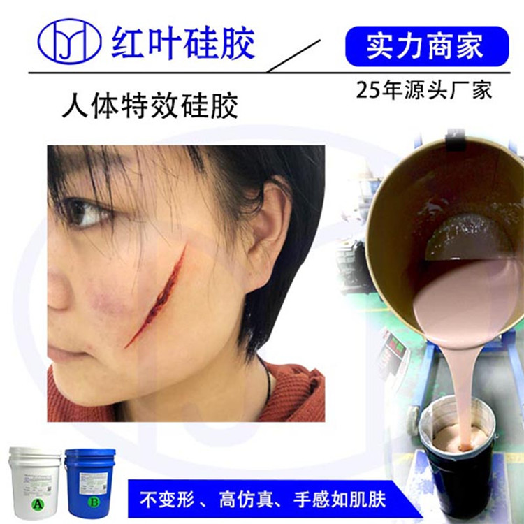 电影特效道具人体硅胶 环保铂金硅胶专用于影视人物效果的制作,如影视道具、影视复古厂家、仿真影视手模、脸部、脚模、恐龙等动物等。环保无毒无味可直接与人体接触,适用面广泛,电影电视剧,MV,影视拍摄都可用到。属于双组份液体硅胶,将AB组份按比例混合搅拌均匀可快速成型形成手感和逼真效果的展示。