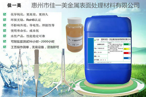 产品用途:JYM-100不锈铁钝化液可钝化处理2cr13.3cr13.4cr13.SUS420.SUS420J1.SUS420J2.20Cr13.30Cr13.Y30Cr13以及马氏体不锈钢材料400系列等材料的表面处理防锈耐盐雾,等处理后为原色钝化,抗中性盐雾测试24~240小时