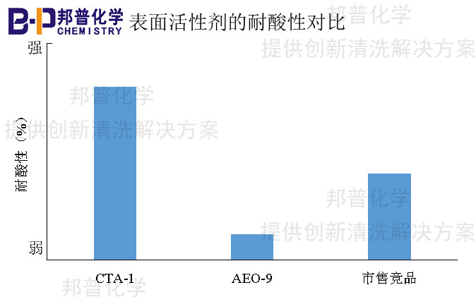 (3)CTA-1在强酸环境下具有优异的渗透性和润湿性,提高清洗力;