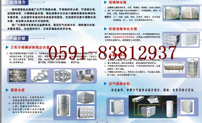 福州水箱厂0591-83812937生产不锈钢水箱,.不锈钢水塔,保温水箱,方形拼装不锈钢水箱,消毒净化水箱,玻璃钢水箱,不锈钢组合水箱立式不锈钢水箱,卧式不锈钢水塔,各种规格水箱自动供水设备,
