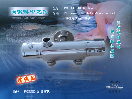 FORXD&弗斯达品牌恒温龙头Thermostatic  Bath  Mixer  Faucet是专为太阳能热水淋浴温控系统研制的配套产品,集成有温显数字恒温控制手柄和出水流量调节手柄,另配带有单管太阳能热水器上水功能阀及止逆过滤件。RS15H/A1产品结构紧凑,外形美观,能够精准的达到节水节能、舒适恒温的效果,更独特的解决了太阳能单管上水问题;这款温控龙头系列目前广泛用于太阳能集热系统中的家庭、宾馆、饭店、医院、学校、洗浴中心等中小型生活热水、公共洗浴用水系统之需要恒温水的场合。