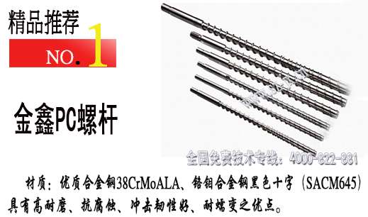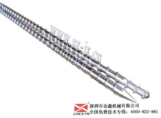 双合金螺杆是采用88wc/12c0.Crc/25Nicr。XaloY108材料,通过整体淬火处理,适用于各类添加玻璃纤维、塑料及PPA、PO、PPS、LCP、ABS、防火、电木粉、磁粉、PC等特殊工程塑胶。完全为终端用户解决了镀铬螺杆时常脱落镀铬层之烦恼,又彻底保证制品环保要求,是您理想的好帮手。