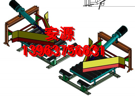 2、非卸料状态:犁刀抬起,中间平托滚组下落,两端托辊变槽型,物料正常通过。