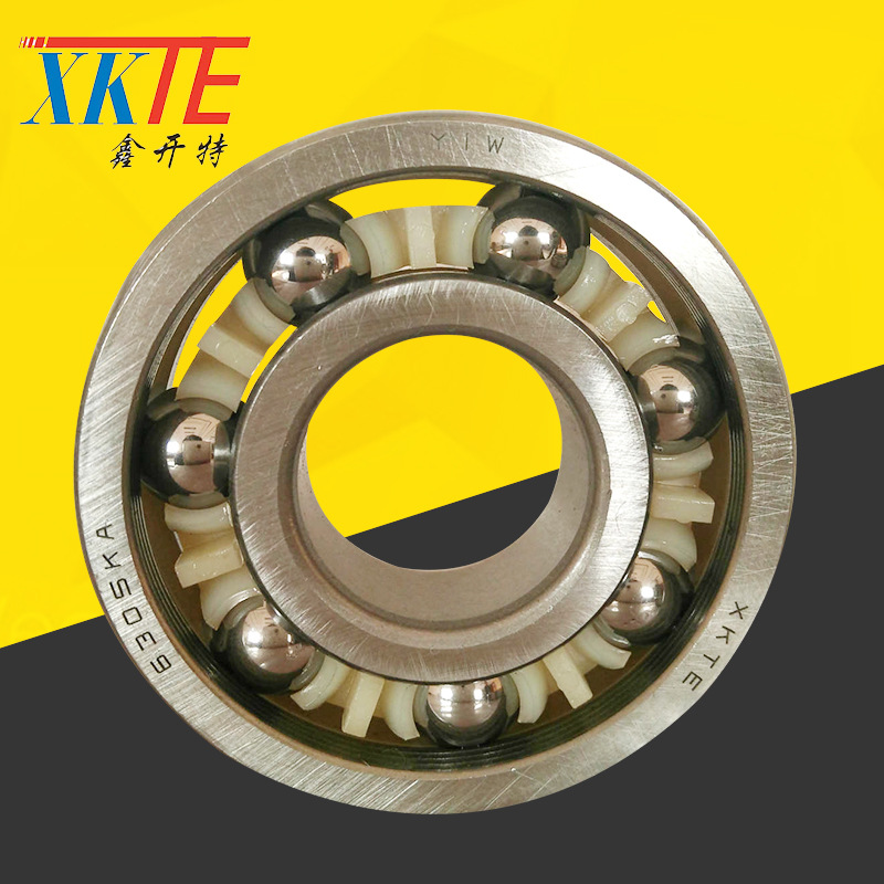 我们采用优质高碳铬GCr15轴承钢磨沟拉丝超精,内外套圈和保持器均加厚,铆钉加粗,结构更加可靠,长城牌轴承四季通用油脂(不分号),游隙C3/C4,四季运行无忧。针对煤矿输送机械,我们采用定做加大加厚KA尼龙保持器(迈思特同厂产品),防卡、防静电性能优异,有效保证托辊运行3万小时。