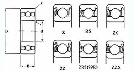 | 型号(ZZ/RS) | 旧型号 | 尺寸 | 型号(ZZ/RS) | 旧型号 | 尺寸 |