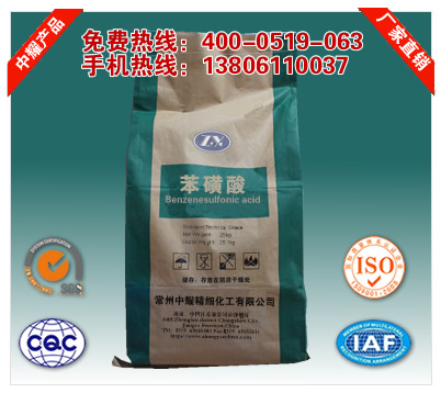 【用途三】苯磺酸用于油田注水,可以解除地层的堵塞、提高地层渗透率。作为酸化注水井的酸,苯磺酸的特点是与碳酸盐反应慢,而且浓度愈大,反应速度愈慢,能酸化深远的地层,与盐酸相比,苯磺酸(及混合芳基磺酸)有效期长、腐蚀性小、使用安全。苯磺酸还用做酯化和脱水反应的催化剂和铸造工业的固化剂。