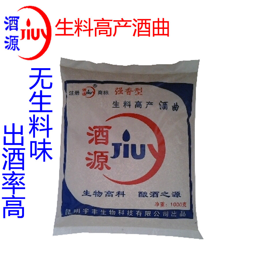 公司研制的酒源牌熟料高产酒曲,是目前唯一的熟料高产酒曲。它属纯生物复合制剂,能将任何生物淀粉彻底糖化,将糖分彻底发酵转化为酒。具有出酒率高(50度白酒、玉米70%-75%,大米90%-95%),省工、省时、省燃料等优点,其酿制出的酒比传统小锅酒的味道还要好。酒源牌生料高产酒曲,具有出酒率高(50度白酒、玉米70%-80%,大米90%-100%),无生味、异味、发酵快、耐高温、发酵彻底,带有传统酒的口味等优点,它是目前最好的生料酒曲。