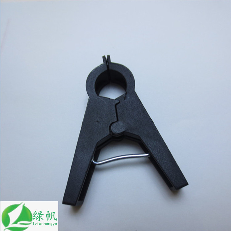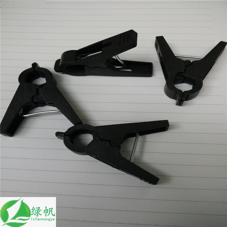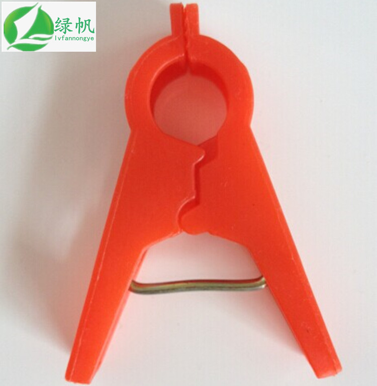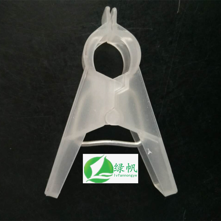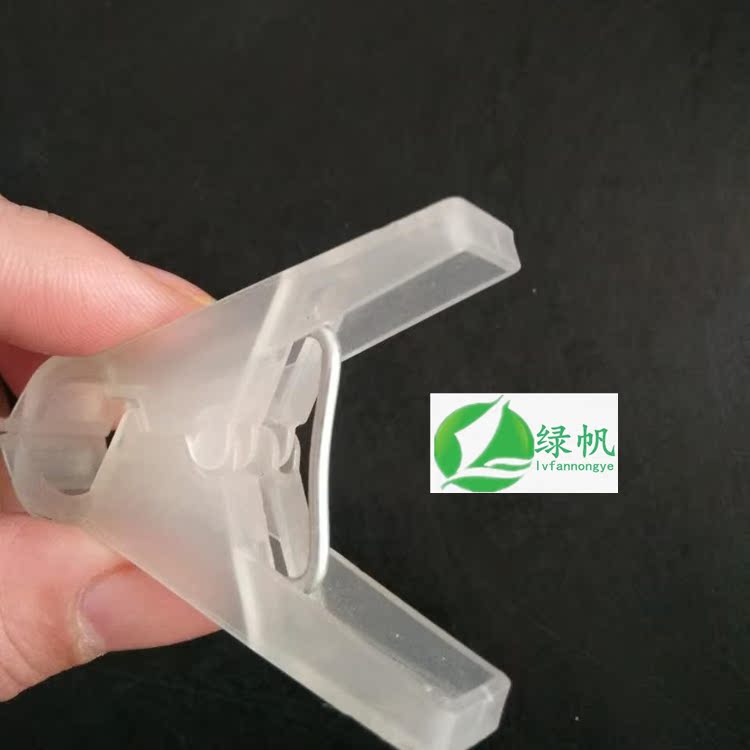 (1)、大棚设施蔬菜植株吊放器,是采用优质塑料生产的,大棚设施蔬菜吊绳与植株固定与快速松放装置,它可将吊绳与植株高效快速固定在一起,而且不伤植株,固定与解开容易且快速高效,大大提高了设施蔬菜吊绳使用中的固定与松放效率,特别适用于黄瓜、番茄放秧,以及设施西瓜甜瓜的固定,在拉秧结束时可以回收二次利用,实现菜秧与吊绳的迅速分离,节省了放秧与吊绳的工作量。