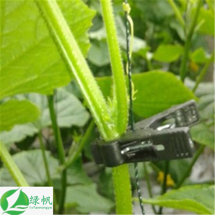 (2)、可以减轻劳动强度,操作使用方便,提高了工作效率,易于采收,小巧玲珑,成本低廉,可重复使用3年以上。主要用于茄果类、瓜类等设施蔬菜茎蔓的吊秧固定和快速高效放秧,替代了传统的绑蔓和绕蔓方式,解决了植株生长过程中落蔓的难题,对提高作物产量起到促进作用,对植株没有任何束缚,使植株健壮生长。