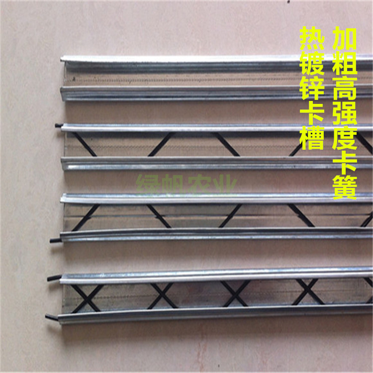 防风卡槽是温室固膜的主要配件之一,卡槽有单层镀锌卡槽、双层镀锌卡槽和方卡槽。压膜卡槽和压膜卡簧作为日光温室、塑料单体大棚、塑料连体大棚固定薄膜专用工具,其利用合理的内角设计,配合自锁功能,可以在大风季节让薄膜在大棚上稳固使用。 具有抗腐蚀,强度大,表面柔滑,不伤棚膜等特点,广泛应用于现代温室大棚建设。