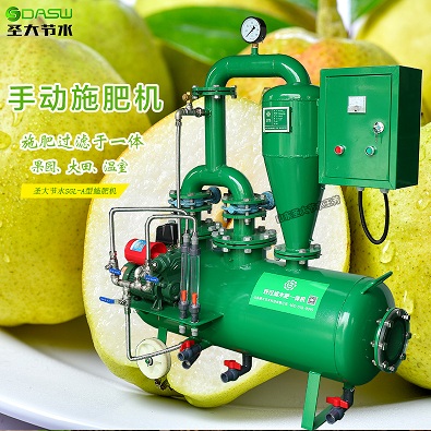 100亩左右的果园施肥机厂家,双过滤SGL-A施肥机是圣大节水通过多年研究、开发在使用过程中,结合离心过滤器和网式过滤器 以及施肥器的工作原理打造的一款适合老百姓、个人使用的集沉沙、混肥、过滤杂质于一体的水肥一体化设备,符合目前大众化的水肥一体化设备,过滤施肥机安装简便,使用者方便操作、简单易学。我们选用机械手焊接技术和抛丸除锈技术,选用优良的喷塑技术保证罐体使用寿命。