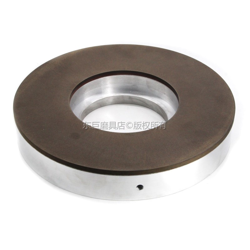 树脂结合剂CBN平面砂轮(立方氮化硼磨盘),采用铝合金基体,用立方氮化硼磨料混合进口酚醛树脂与基体粘接牢固,磨料硬度高,装于端面磨床上,使用十分方便。其主要用于轴承、传动齿轮、垫圈、挺杆垫片、压缩机零件、叶片泵叶片、换档齿轮、垫片、槽、水油压泵叶片、精密弹簧等行业工件;也适用于高速工具钢、模具钢、轴承钢、碳素工具钢、弹簧钢、铸铁、烧结黑色金属等多种材料。在 CBN磨粒层分布中,具有较一致的粘合质量和尺寸精度。东巨CBN磨盘适用于各种钛合金、高温合金、不锈钢等硬韧难加工材料的大余量去除加工。