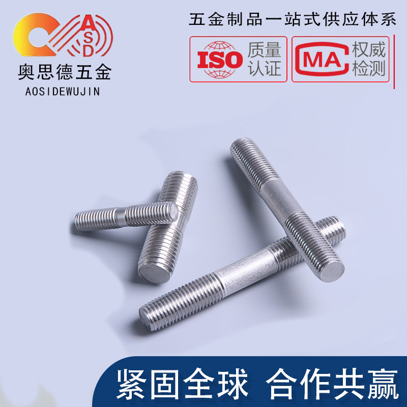奥思德五金采用先进的设备,采用国内优质线材,专业生产不锈钢双头螺栓,牙棒等,材质涵盖SUS304/316/316L,客户群体涵盖机械设备、电力、钢铁、冶金、石油、化工、机床、纺织、汽车、电机、精密仪器、矿山机械、建筑机械、工路工程机械、铁路等领域。规格齐全,库存充足,欢迎选购!