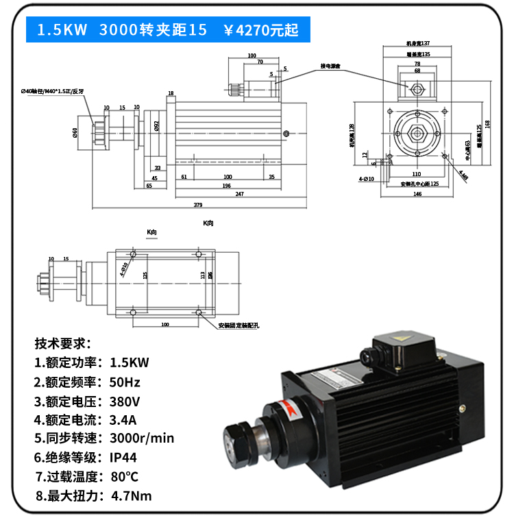 8 、除了按上述几项内容对电机进行定期维护外,运行一年后要大修一次。大修的目的在于,对电机进行一次彻底、全面的检查、维护,增补电机缺少、磨损的元件,有助于消除电机内外的灰尘、污物,检查绝缘情况,清洗轴承并检查其磨损情况。发现问题,及时处理。一般来说,只要使用正确,维护得当,发现故障及时处理,电机的工作寿命是很长的。