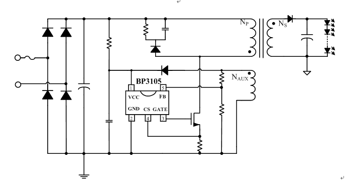 BP3105 工作在电感电流断续模式,采用原边反馈模