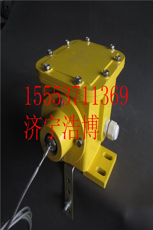 2、将开关以对的形式安装在胶带两侧,用钢丝绳将两个开关拉环连接,并用吊环使钢丝绳的走式与胶带平行;