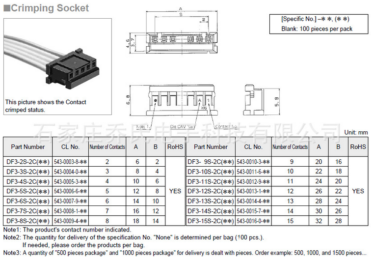 HRS广濑公形胶壳连接器DF3-3EP-2C