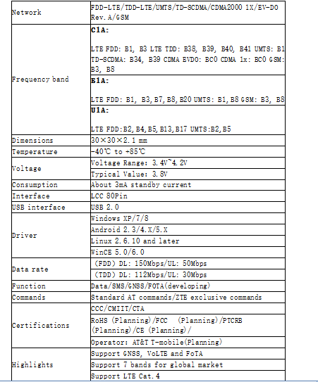 ME3630LTE Cat.4 Module ZTE
