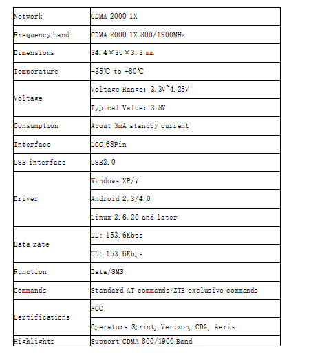 ● 支持FCC, Sprint, Verizon, CDG and Aeris认证