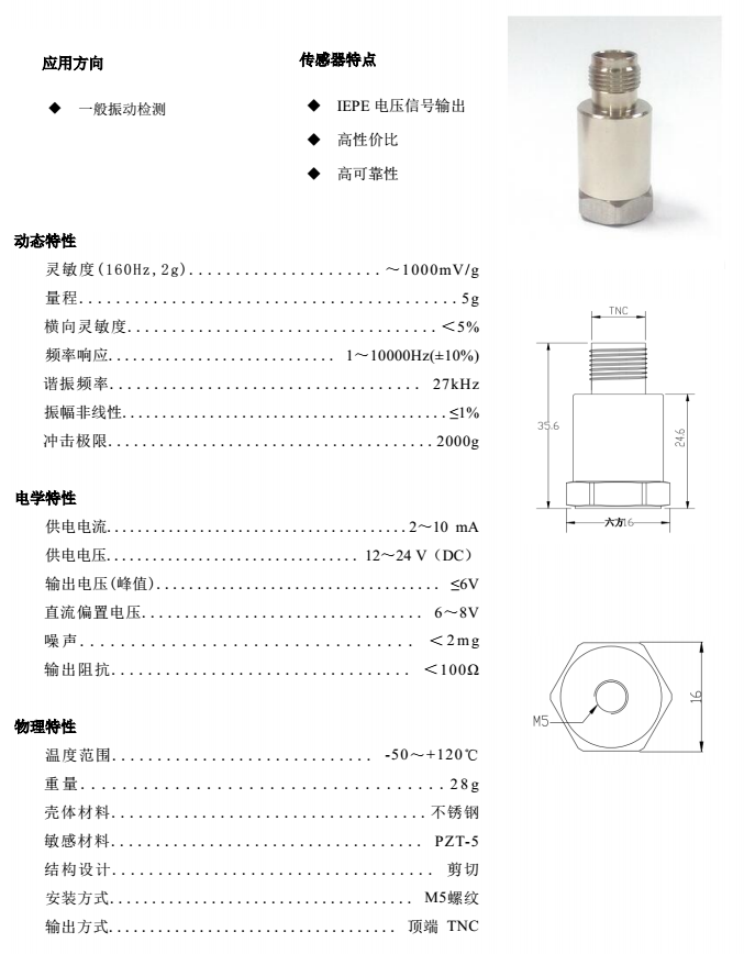 高灵敏度,高性价比,高可靠性,适用于工业振动监测,详情请与客服联系