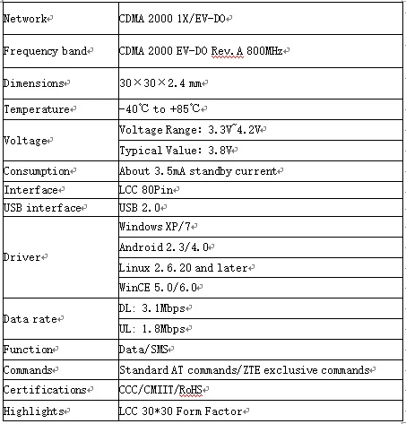 | Commands | Standard AT commands/ZTE exclusive commands |