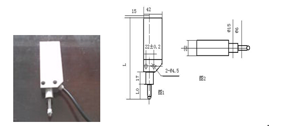 方形结构使用安装测杆朝下或水平放置.以螺钉固定.固定孔中心距为22±0.2㎜.或以?15轴夹紧. 如图1.图2所示