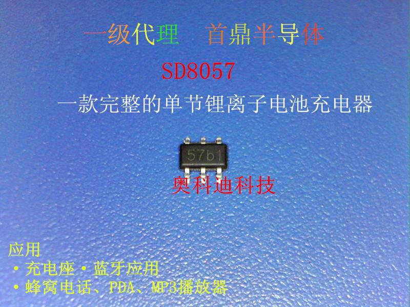 SD8057一款完整的单节锂离子电池充电器,带电池正负极反接保护,采用恒定电 流/恒定电压线性控制。其 SOT 封装与较少的外部元件数目使得 SD8057便携式应用的理 想选择。SD8057 可以适合 USB 电源和适配器电源工作。 由于采用了内部 PMOSFET 架构,加上防倒充电路,所以不需要外部检测电阻器和 隔离二极管。热反馈可对充电电流进行自动调节,以便在大功率操作或高环境温度条件 下对芯片温度加以限制。充满电压固定于 4.2V,而充电电流可通过一个电阻器进行外部 设置。当电池达到 4.2V 之后,充电电流降至设定值 1/10, SD8057将自动终止充电。 当输入电压(交流适配器或 USB 电源)被拿掉时,SD8057 自动进入一个低电流状 态,电池漏电流在 2uA 以下。SD8057 的其他特点包括充电电流监控器、欠压闭锁、自 动再充电和两个用于指示充电结束和输入电压接入的状态引脚。
