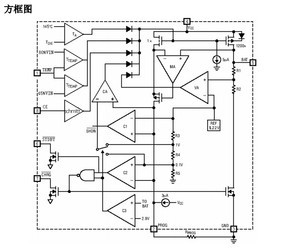 TP4056 是一款完整的单节锂离子电池采用恒定电流/恒定电压线性充电器。其底部 带有散热片的 SOP8/MSOP8 封装与较少的外部元件数目使得 TP4056 成为便携式应用的 理想选择。TP4056 可以适合 USB 电源和适配器电源工作。 由于采用了内部 PMOSFET 架构,加上防倒充电路,所以不需要外部隔离二极管。 热反馈可对充电电流进行自动调节,以便在大功率操作或高环境温度条件下对芯片温度 加以限制。充电电压固定于 4.2V,而充电电流可通过一个电阻器进行外部设置。当充电 电流在达到最终浮充电压之后降至设定值 1/10 时,TP4056 将自动终止充电循环。 当输入电压(交流适配器或 USB 电源)被拿掉时,TP4056 自动进入一个低电流状 态,将电池漏电流降至 2uA 以下。TP4056 在有电源时也可置于停机模式,以而将供电 电流降至 55uA。TP4056 的其他特点包括电池温度检测、欠压闭锁、自动再充电和两个 用于指示充电、结束的 LED 状态引脚。
