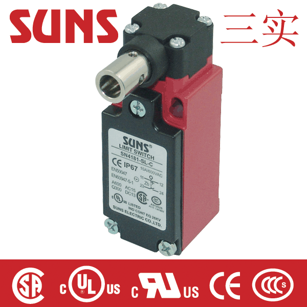 SUNS美国三实SND4181系列小型安全门铰链开关(轴杆型)产品型号:SND4181-SL-C(1NC/1NO)、SND4181-SL2-C(2NC)、SND4181-SL6-C(2NC/1NO)、SND4181-SL4-C(3NC)、SND4181-SL1-C(1NO/1NC(MBB接点)、SND4181-SL7-C(2NC/1NO(MBB接点)。