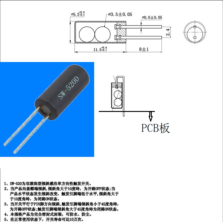 SW-520D 滚珠弹簧震动开关 拍拍灯消毒灯震动开关