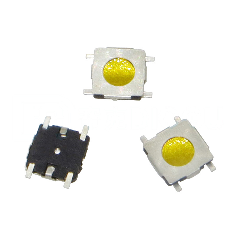 贴片轻触开关(小型电子开关)是一种电子开关,属于电子元器件类,又叫按键开关,出现在日本,称之为敏感型开关,使用时以满足操作力的条件向开关操作方向施压开关功能闭合接通,当撤销压力时开关即断开,其内部结构是靠金属弹片受力变化来实现通断的。