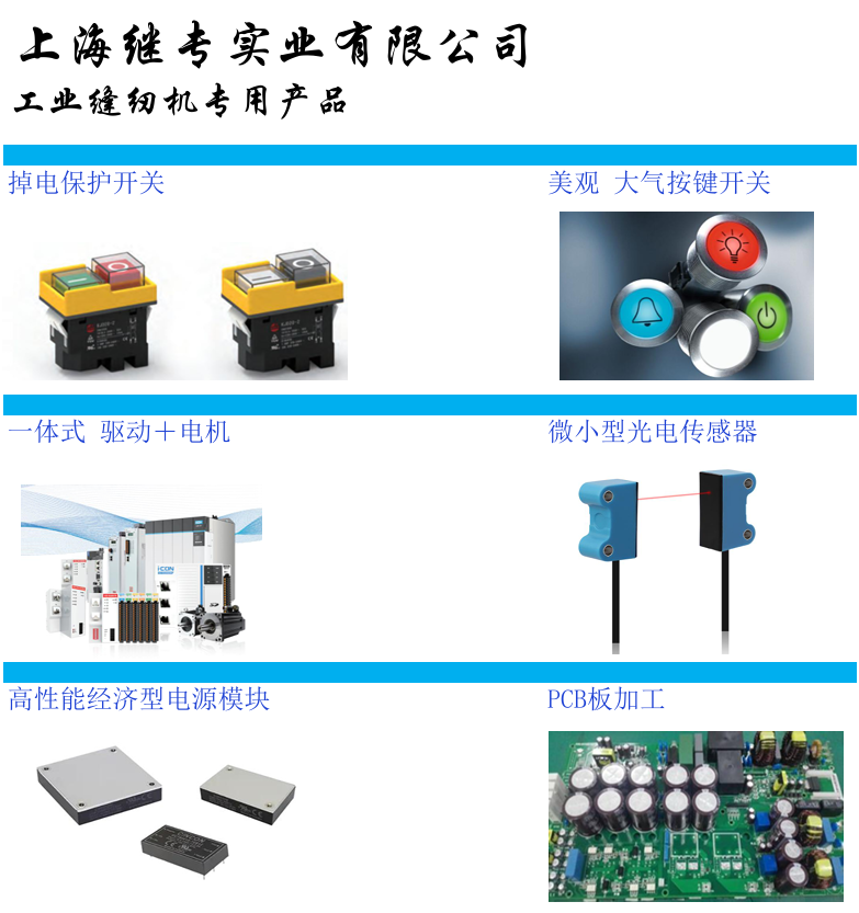 智能感知与安全防护:微小型光电传感器被巧妙安装在针杆、绕线器等关键位置,用于实时检测断线、布料边缘跟踪及自动剪线,是实现高质量自动化缝纫的“眼睛"。同时,掉电保护开关能在突然断电时,通过内置电容储备的能量,瞬间驱动电机完成当前缝纫并精准抬针,有效防止布料污染、针头损坏及针位错乱。
