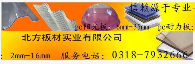 北方板材实业有限公司(PC耐力板)是中国专业化PC板材制造企业,也是华北地区唯一一家PC阳光板和PC耐力板专业生产厂家,目前拥有先进的专业PC耐力板生产线3条,采用德国拜耳(BAYER)和美国通用(GE)特一级PC高分子聚碳酸酯原料及UV抗紫外线原料,凭借公司高层管理人员十几年之宝贵经验,产品和技术均达到国际先进水平,生产的PC聚碳酸酯系列中空板、PC耐力板板及PC耐力板型材等产品畅销全国,并被选作北京奥运会开幕式奥运历史长卷中心板材,成功地托起了全中国的梦想和希望。