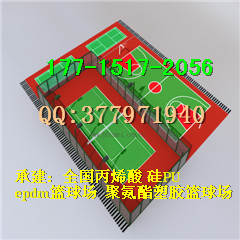 塑胶篮球场特性:丙烯酸篮球场每平方米55元 硅PU篮球场每平方米90-120元 EPDM塑胶篮球场每平方米90-130元 均包工包料施工