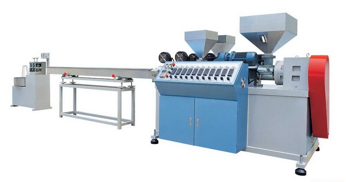 新型仿藤机分为三色,双色,单色仿藤机。包括挤出主机,模具,手动换网器,冷却水槽,牵引和收卷系统。