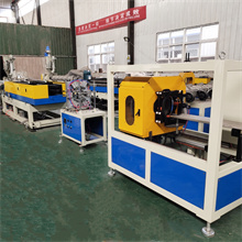 双壁波纹管生产线由两台单螺杆挤出机、模具、水套、成型模块、成型机、收卷机或切割机组成,两台挤出机分别挤出双壁波纹管的内外层。挤出机采用高效螺杆,模具为双螺旋体结构,口模芯棒均经过氮化处理,成型模具采用45#锻打材料加工而成。设备整线采用西门子人机界面控制系统,挤出性能稳定,自动化程度高,操作简单。产品特点: