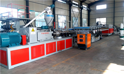 pvc广告板设备 结皮发泡板生产线 木饰面机器原材料配料——高速混合机——挤出——发泡——冷却定型——喷淋——牵引——切割——堆料——检验——成品入库公司提供配方和全套工艺技术。具有产量大,挤出稳定,发泡倍率高,表面平整等特点。通过印刷、贴膜和热压设备,可以生产各类仿木制品,用途广泛。