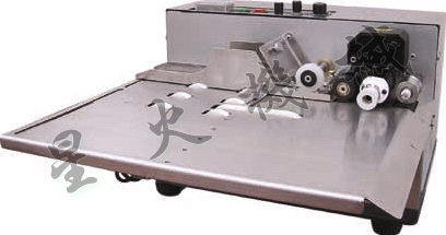 固体墨轮印字机是一种先进的接触式热打码机。本机采用间歇式自动加热和精密的机械相结合,可根据用户需要,任意选择印字内容与位置,并可设定压印张数,打印速度快,性能可靠,字迹清晰,压印动作及计数采用光电开关控制。
