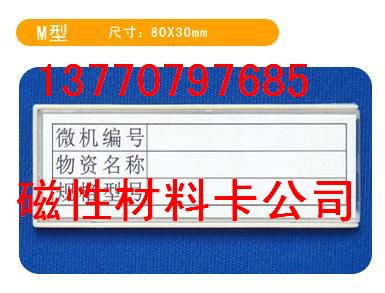 看板夹.标签夹.货架标签,磁性材料卡,双向磁性材料卡,磁性汽车零件卡,磁性库位卡,磁性标签卡,磁性标牌,磁性车位卡由ABS工程塑料制成025-85381806/85381881,有A型,B型,C型,E型,H型,K型,J型,Y型,G型,Q型等;按数位分有2-6位不等材料卡.广泛应用于机关、部队、企事业单位的仓储管理。它背面特有的强磁材料,可以使它直接吸附在铁质货架上,上半部份插卡片,记录材料名称、规格、型号,下半部份用转盘显示库存数量,转盘有定位,E型可以直接记录入库、出库、库存量,适用于企业的认证、升级、创一流。该产品经全国各地供电局、电厂、汽车4S店、炼油厂、钢铁厂、造纸厂、电子企业、机械制造业、自来水公司等单位使用效果良好,