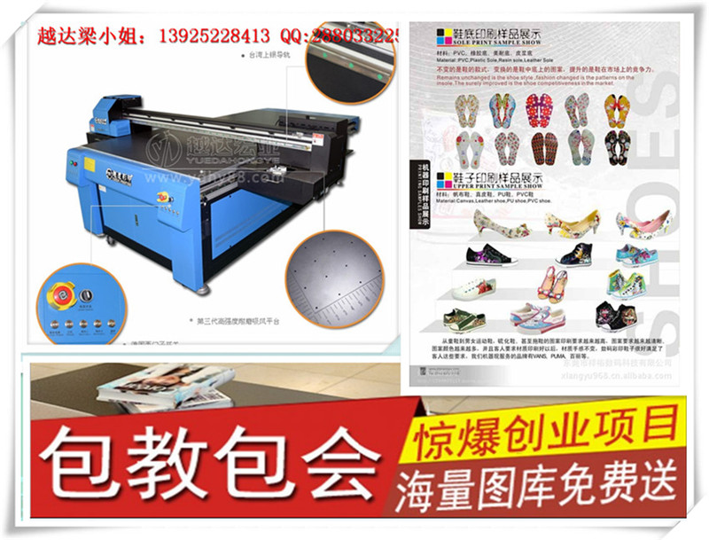 皮革喷绘机是一台高科技印刷设备,可以在任何软、硬质材料表面直接印刷任何图案,免中间耗材,它应用非接触式的印刷技术,任何多图案一次打印成功,无需制版,工序简单、即喷即干,具有快速、高效、灵活的个性化输出特点,是手工绘画、各类转印、丝网印刷技术的一次技术创新。详情咨询139-2522-8413 打印的图案色彩艳丽,具有防水、防晒、耐磨损、永不褪色等特点。万能打印机突破了数码印刷技术瓶颈,是传统印刷机的替代产品,它不受任何材料限制,可直接在表面进行彩色照片级印刷。不论是简单的块图案,全彩图案或是具有过度色的图案,都能一次印刷完成,无需制版、无需晒版和重复套色,应用领域非常广泛。